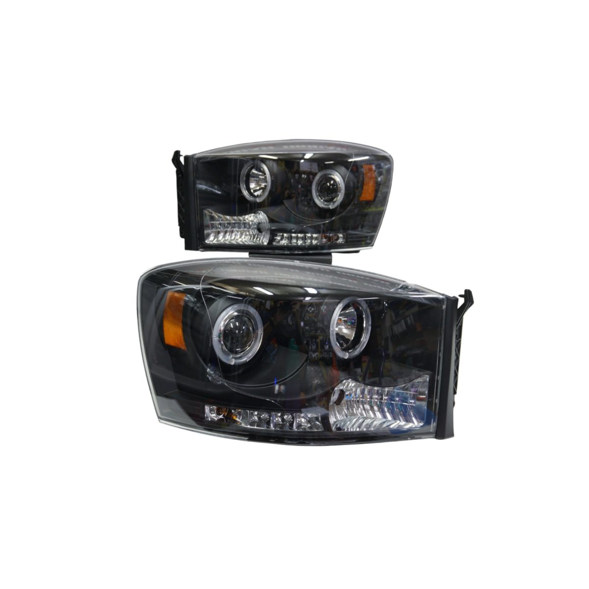 Ópticos delanteros Dodge RAM 06-08 fondo negro YJM